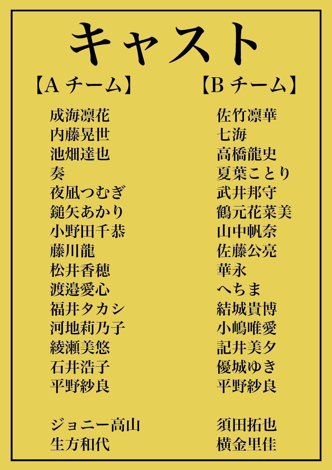 AチームとBチームのWキャストになります。